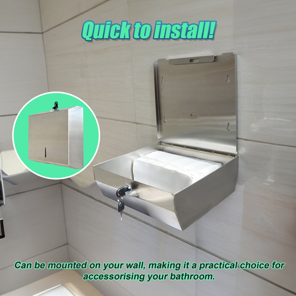 This Stainless Steel Hand Paper Towel Dispenser Is A Great Option For Your Restaurant Or Business Restrooms. It Is Quick To Install And Can Be Mounted On Your Wall Making It A Practical Choice For Accessorising Your Bathroom. The Simple Yet Modern Design Makes It A Great Bathroom Accessory For Commercial Restrooms And Kitchens. And The Durable Stainless Steel Used In This Heavy-Duty Paper Towel Holder Ensures That It Will Hold Up To Regular Use In High-Traffic Areas.