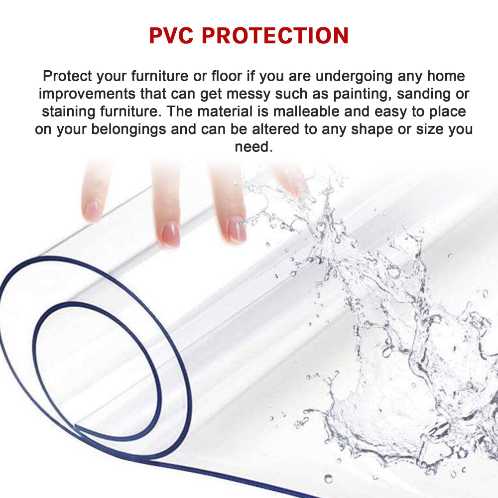 Having Access To A Large Perfectly Clear plastic Tablecloth Is A Handy Way To Be Able To Protect Your Tablecloth During Events Such As Children's Birthday Parties. Alternatively It Also Acts As A Fantastic Way To Protect Your Furniture Or Floor If You Are Undergoing Any Home Improvements That Can Get Messy Such As Painting Sanding Or Staining Furniture. The Material Is Malleable And Easy To Place On Your Belongings And Can Be Altered To Any Shape Or Size You Need. Easy To Clean Simply Give The Protector A Quick Spray And Wipe And It's Good To Go For Your Next Event Or Home Renovation Job.