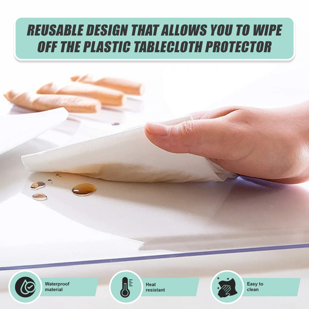 - The Pvc Material Is Easy To Clean And Features A Reusable Design That Allows You To Wipe Off The plastic Tablecloth Protector