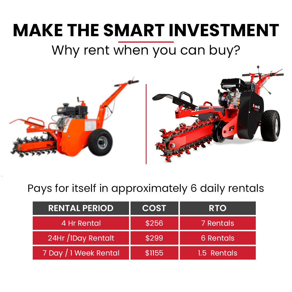 - 8Hp 4-Stroke Forced Air Cooled OHV Engine for efficient trenching.