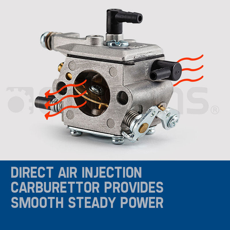 The MTM 72SX chainsaw is the ultimate wood cutting companion. Whether you're pruning hedges cutting firewood or taking down whole trees. This fast revving perfectly balanced unit packs serious punch with its patented air injection carburettor and intake system delivering more grunt.