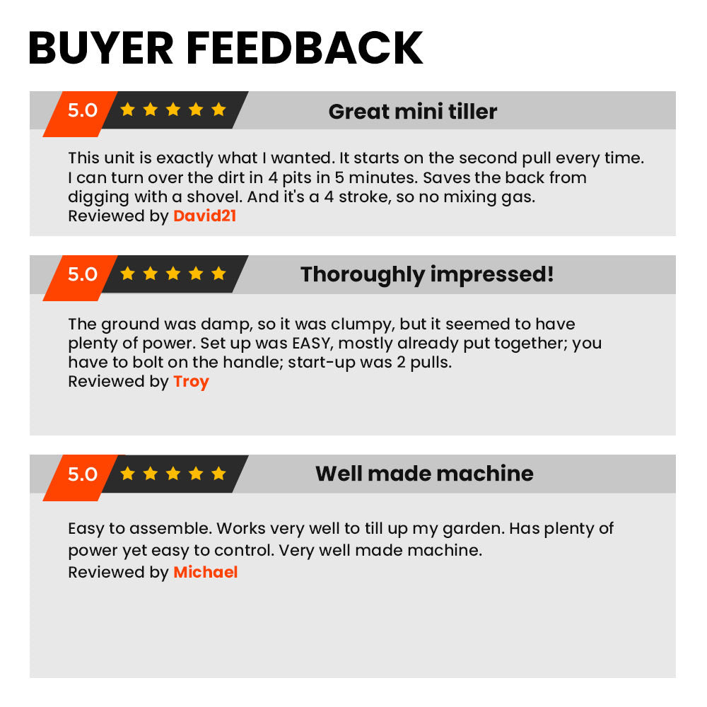 The Premium 46Cc Ohv Powerful Easy-Start 4-Stroke Engine Is Powerful Enough To Turn Up Dry Compacted Soil Along With The Benefits Of Quieter Operation Less Vibration Less Smoke And No Fuel Mixing Hassles!