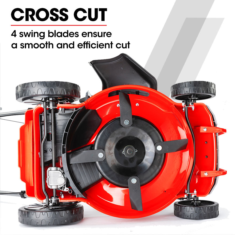 The Absolute World Class Quality Is Complemented By All The Features You Need; 7 Stage Central Height Adjustment A Heavy-Duty 20' Steel Deck An Integrated Drink Holder And Quick Release Folding Handles. 4-In-1 Functionality Offers The Option Of Catching Mulching Direct Side Discharge Or Direct Rear Discharge While The Self-Propelled Design Ensures A Leisurely Stroll. And With Crosscut Swing Blades You'll Always End With A Perfectly Cut Lawn That Your Neighbours Will Envy!