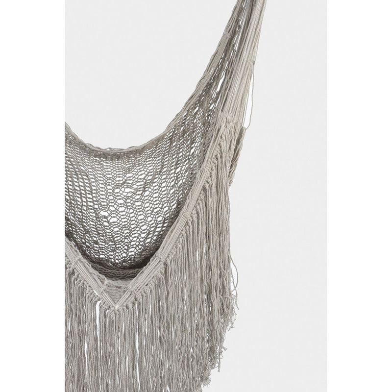 Indulge In Pure Relaxation With This Stunning Hammock Swing. Crafted With 100% Cotton Rope In Our Dreams Sands Catalog Color This Elegant Gray Rope Hammock Is Adorned With A Luxurious Fringe Making It The Perfect Addition To Any Space.