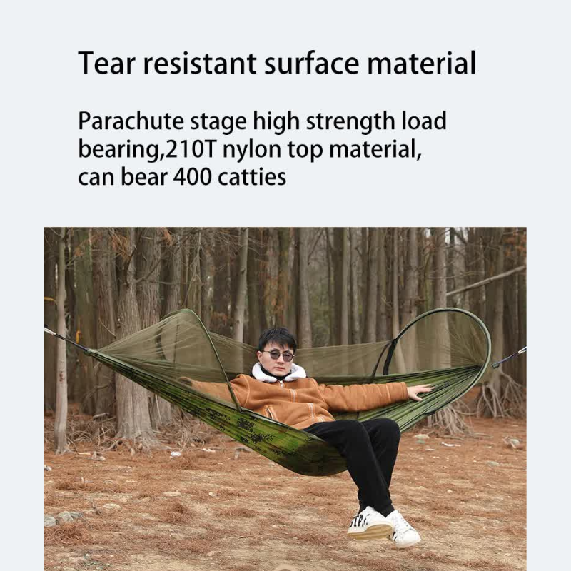 Elosung Military Green Outdoor Camping Hammock With Mosquito Net Anti Tip Nylon Fabric Single/Double Person Quick Setup Hammocks