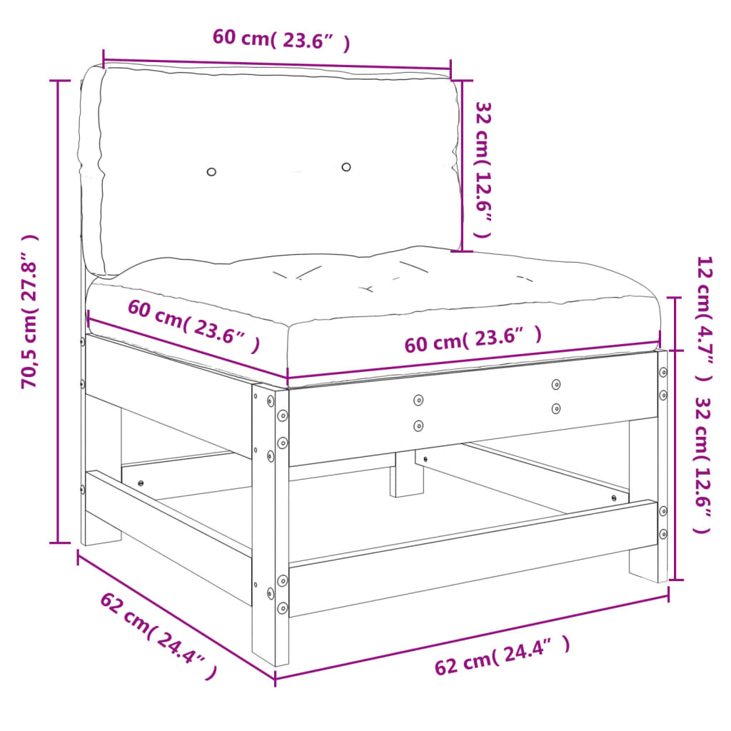 Middle Sofa With Cushions Solid Wood Pine Patio Chairs