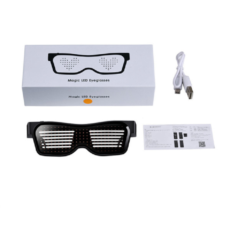 and fasten to your clothes or belts - Bluetooth enabled to connect to the GlowGlasses App (Support above Android 4.3 and Apple 7.0 versions) to and instantly customize your messages