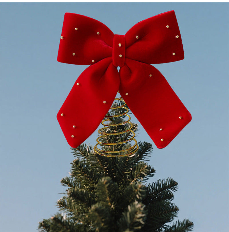 Santyuan New Red Velvet Tree Top Star Christmas Tree Decoration Bowknot Tree Topper Ornament