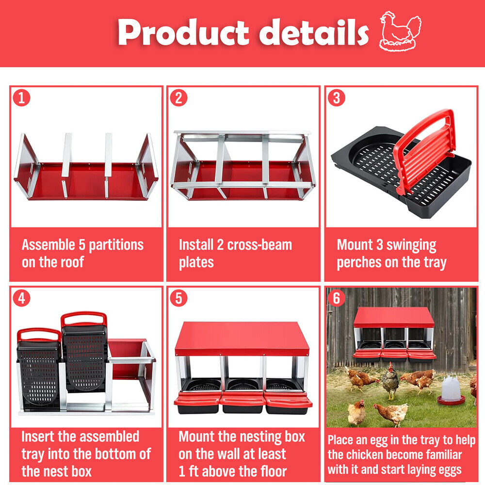 - 3 Nesting Boxes:Our Coop Features Three Dedicated Nesting Boxes Each Designed To Provide A Secure And Quiet Environment For Your Chickens To Lay Their Eggs. The Roll-Away Design Makes Egg Collection A Breeze.
