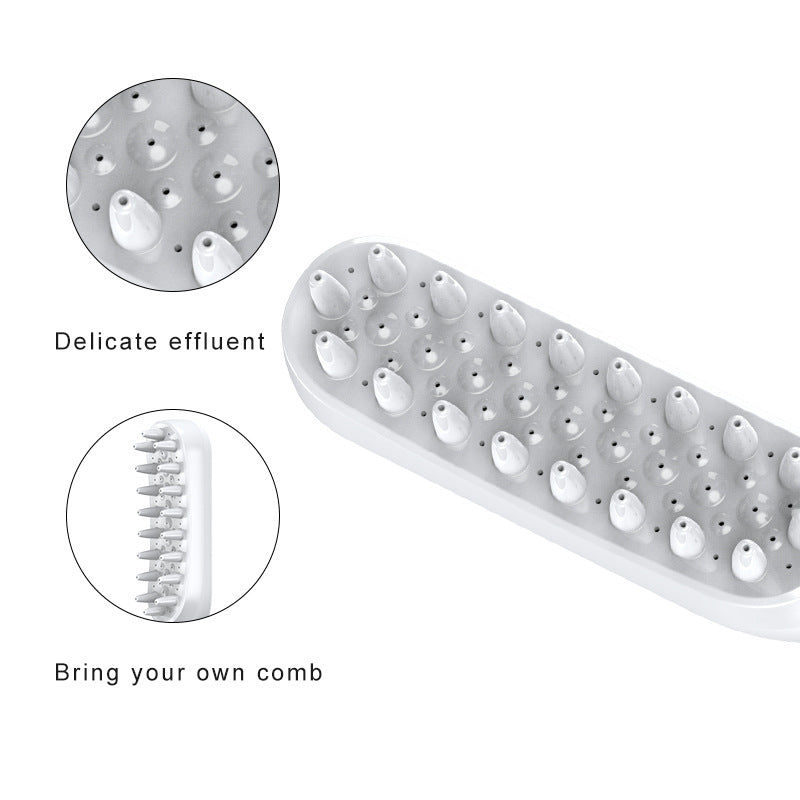 - Innovative Sprayer Comb Design: Water Outlets Are Strategically Placed At The Tips Of The Comb Teeth Delivering Water Directly Into Your Pet's Coat For Deep Cleaning And Efficient Rinsing. The Comb Helps To Detangle And Remove Loose Fur While Washing.