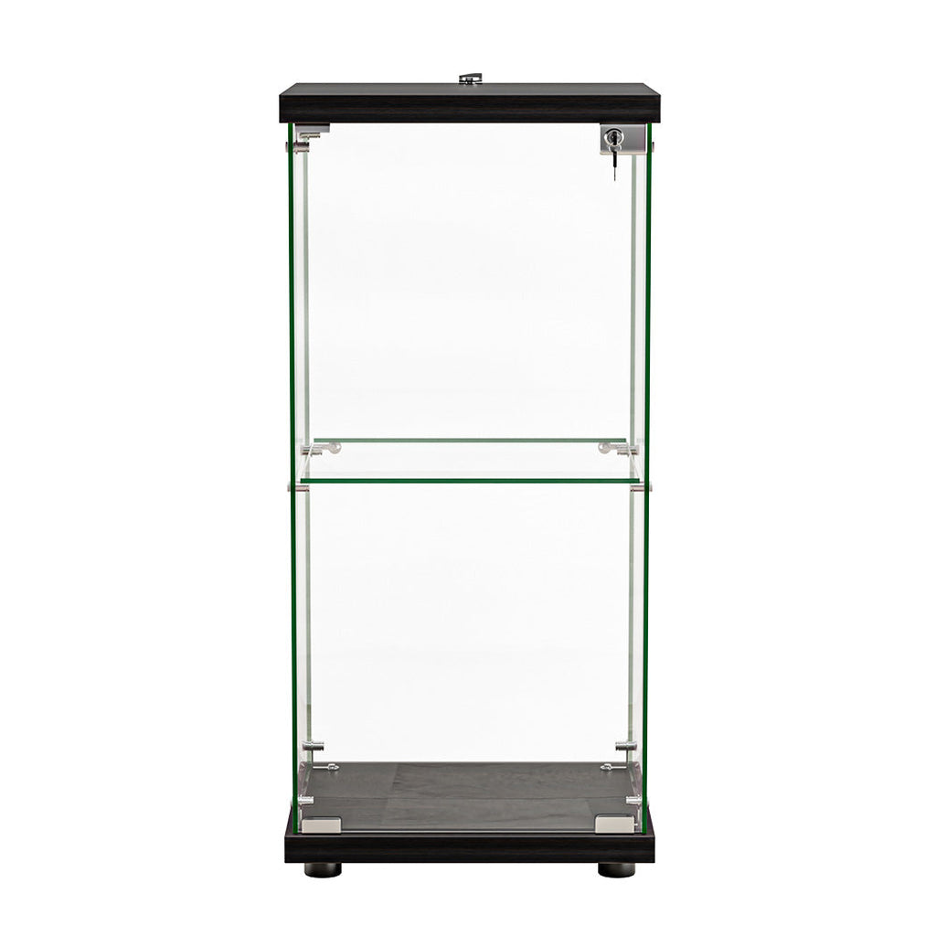 2 Tier Tempered Glass Display Cabinet With Lock Black Collection Storage Cabinets & Cupboards