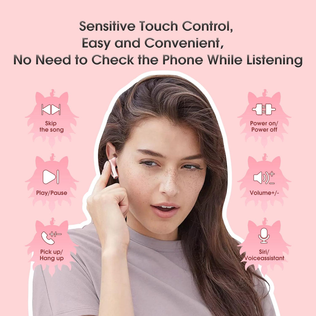 Wireless Cartoon Bluetooth Earphones Transparent Design Pink Earbuds