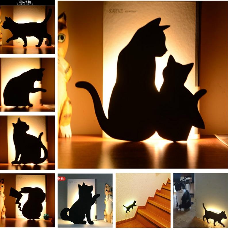 Led Kitten Silhouette Wall Night Lights!Made Of Black Polyethylene Panels By laser Engraving They Bring A Fun Touch To Your Home!
