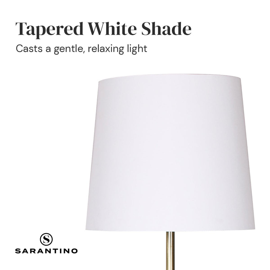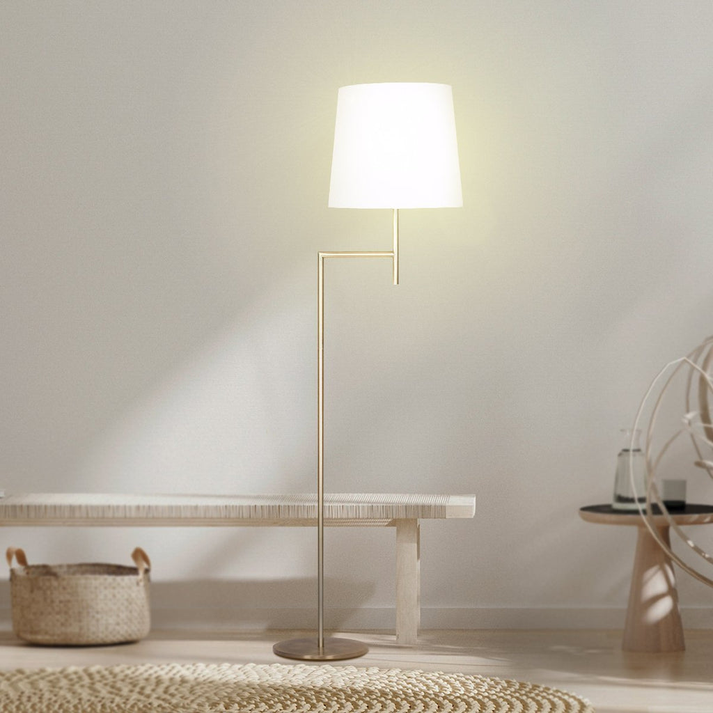 This Modern Floor Lamp Has A Neat Design And Easily Fits Most Decor Styles From Mid- Modern To Traditional And Contemporary. The Antique Brass Finish Pairs With The Warm Tone Of The Tapered Lampshade To Make You Feel Warm Cozy And At Home In Any Room. The Shade Directs Light Downwards Making This Lamp Perfect For A Reading Nook. Let The Shade Hang Over Your Sofa Armchair Or Desk For Added Illumination.