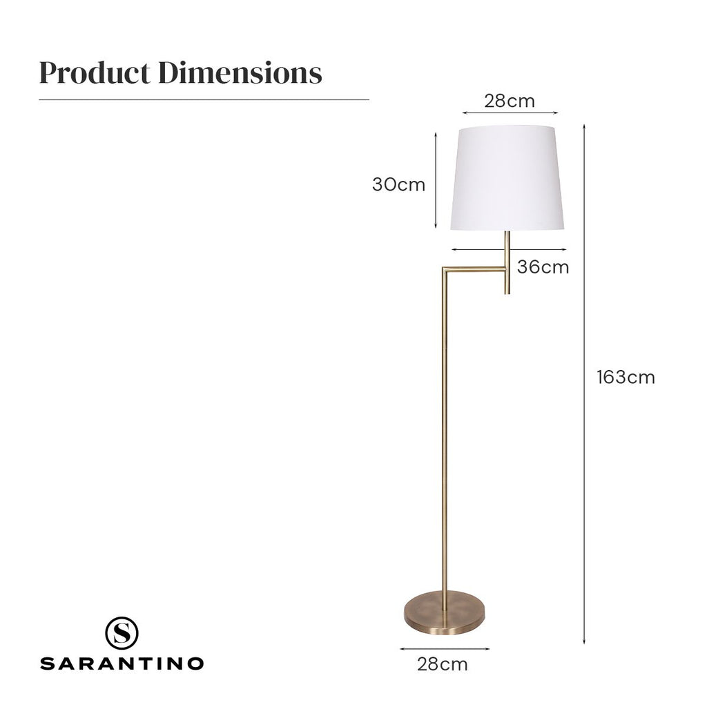 Sarantino Metal Floor Lamp In Antique Brass Finish With Cream Linen Fabric Shade Floor Lamps