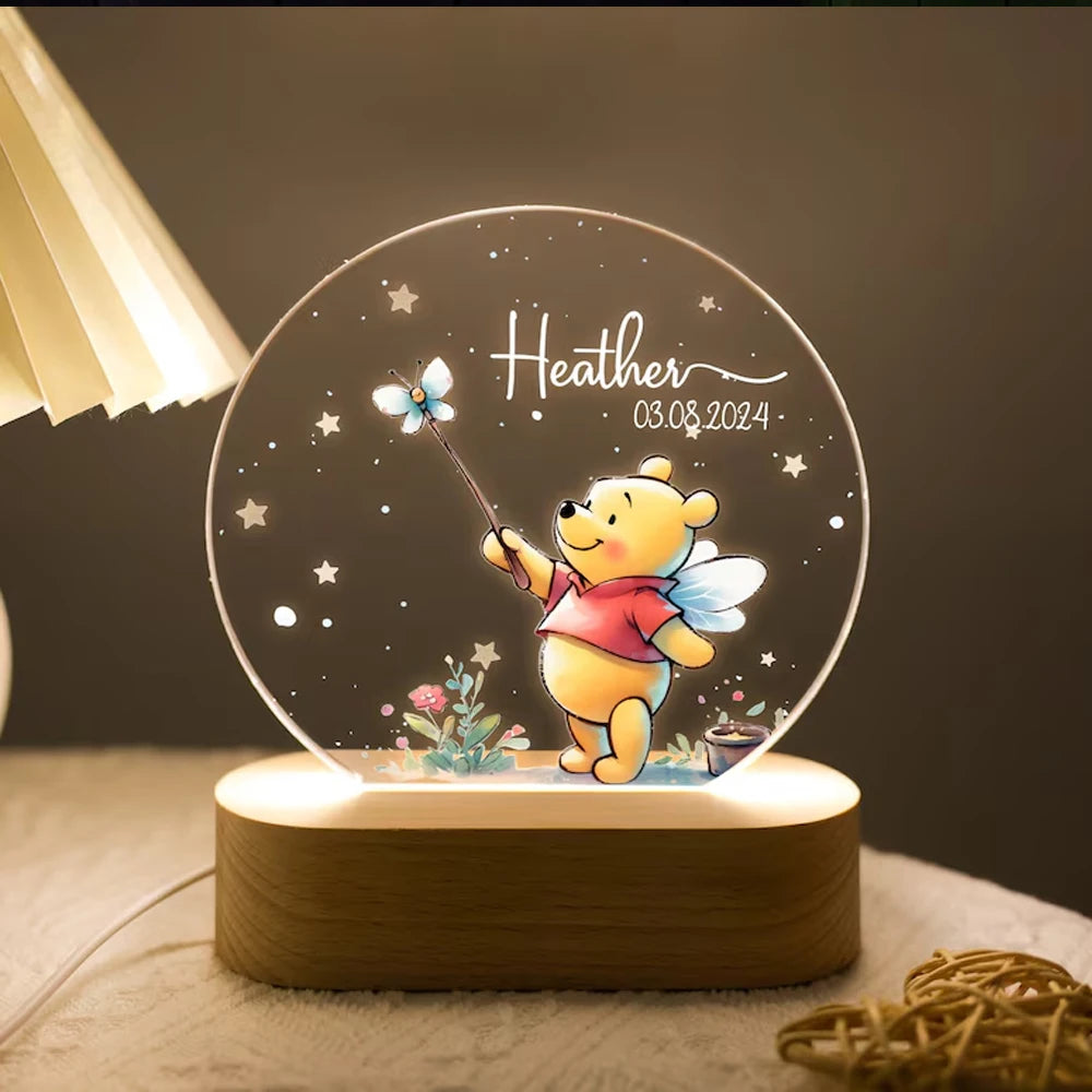 Custom Name Date Acrylic Plaque With Cute Mouse Night Light