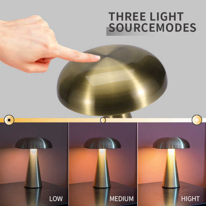 Modern Aesthetic: A unique mushroom-shaped design with a metallic finish for a contemporary look.