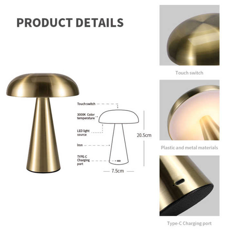 - Modern Aesthetic: A unique mushroom-shaped design with a metallic finish for a contemporary look.