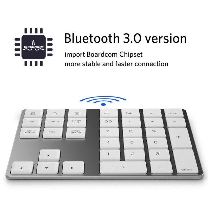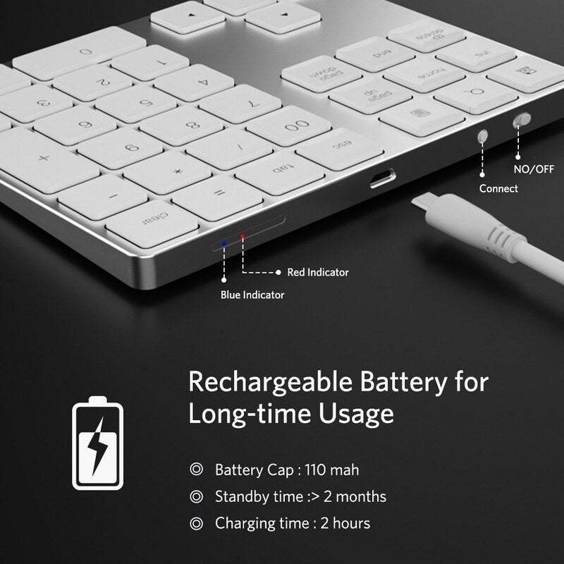This Bt Numeric Keypad Is . Ideal For Business Use. Aluminium Pad And Ergonomic Tilt Design Is Durable And Comfortable To Use. Built-In Battery Keeps A Long-Time Use. It Supports WindowsIosAndroid Systems.